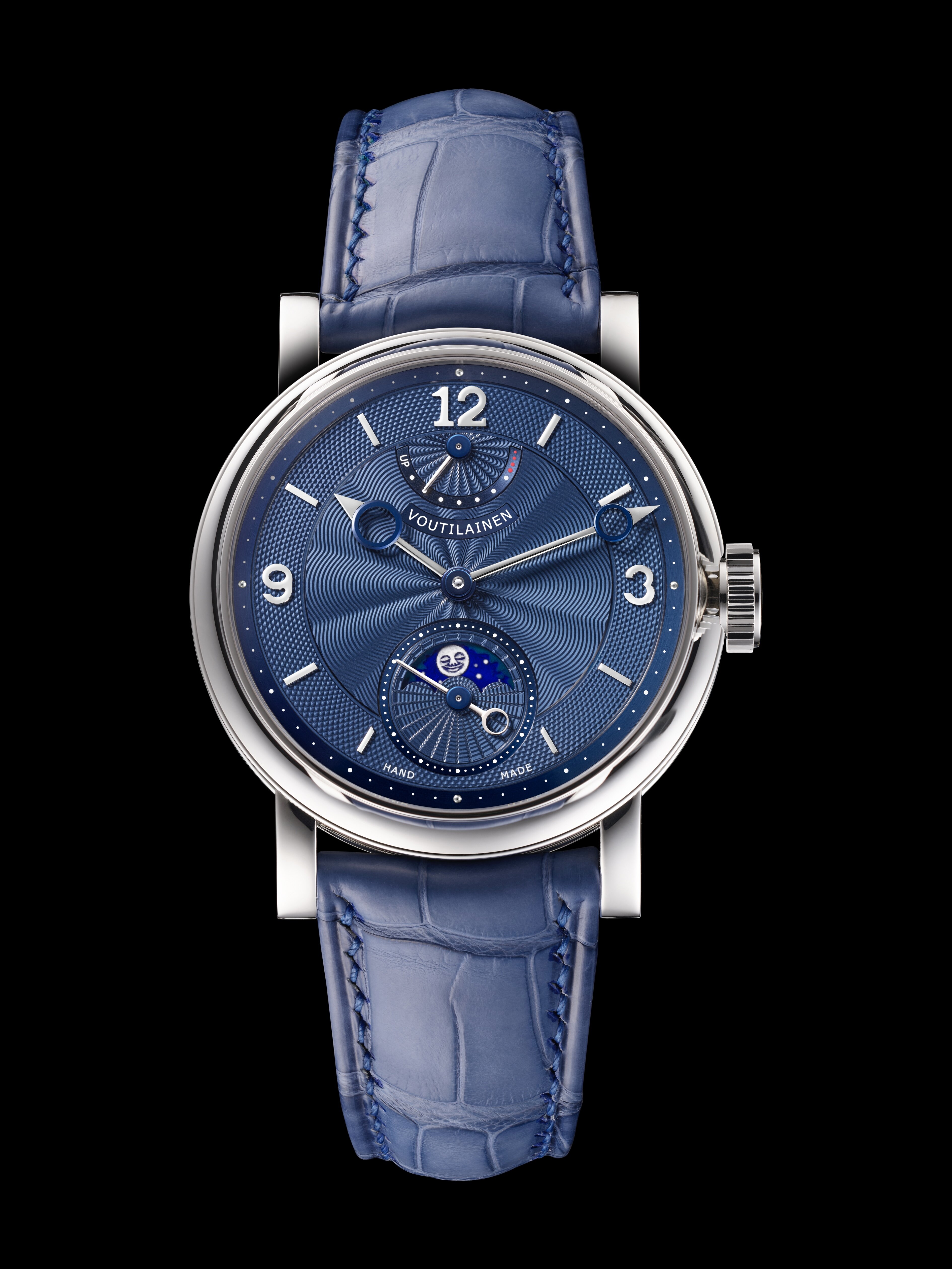 「28MPR」は、12時位置のパワーリザーブ表示に加え、リュウズを内側に押し込むだけで調整可能なムーンフェイズ機構を6時位置に備えています。これは、ヴァントゥイットのムーヴメント構造に深みを与えると同時に、ヴァントゥイットの誕生以来の特徴である純粋さと調和を保っています。