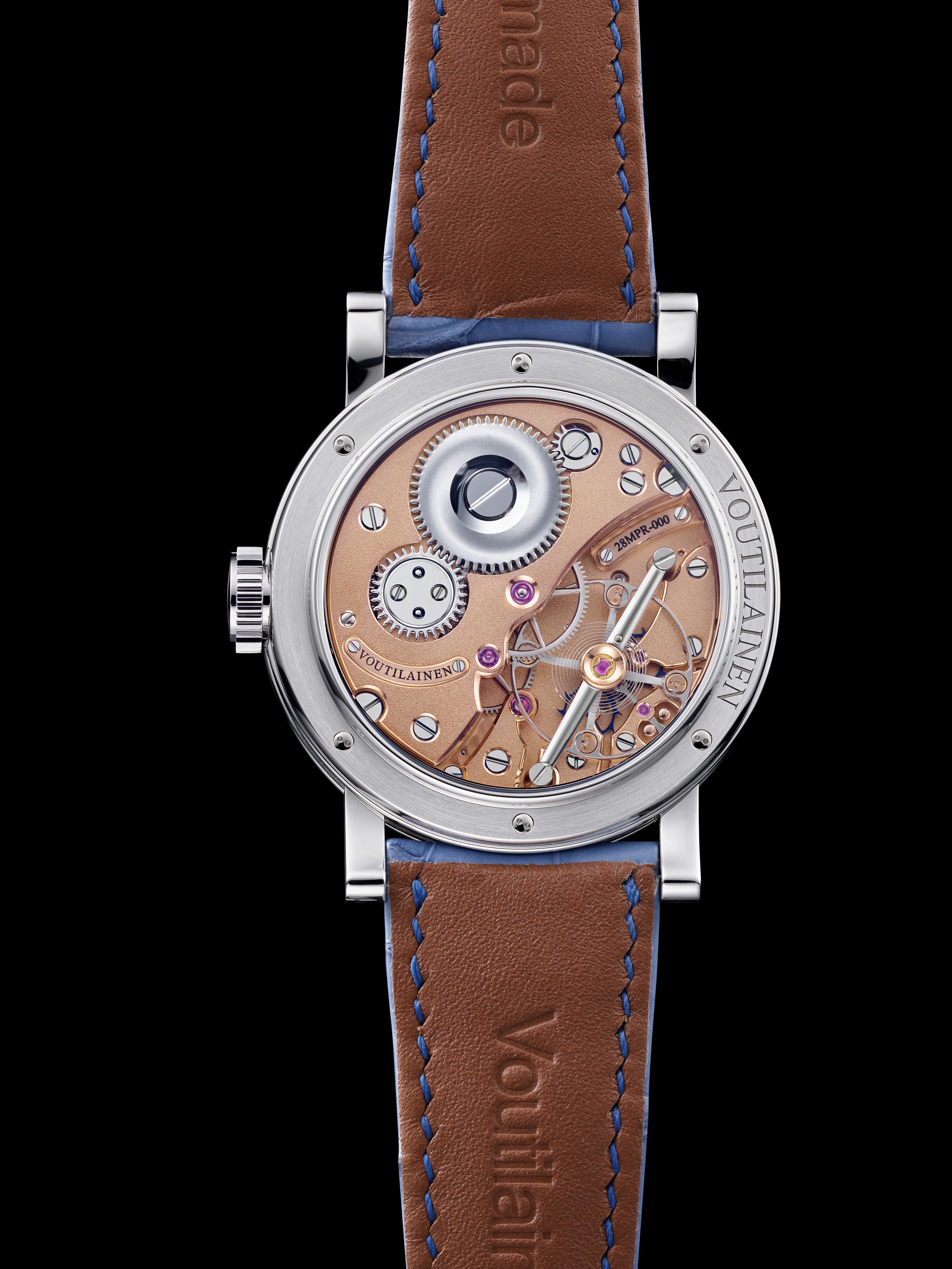 2008年に開発が始まり、2011年に発表されたヴァントゥイット(Vingt-8)は、卓越した仕上げ、高度な技術、そして伝統的な時計製造に根ざした完璧なバランスで高く評価され、独立系時計製造の象徴となっています。精度、持続性、耐用性、そして伝統的な時計製造に根ざした"革新"というヴティライネンの哲学を体現する自社製キャリバー28とその象徴的なダブルホイール・ダイレクトインパルス脱進機は、ヴティライネン工房の歴史におけるランドマーク的な存在です。 2025年末日をもって、このムーヴメント・キャリバーと関連モデルの受注製造は終了となり、一つの時代が終わりを迎えます。