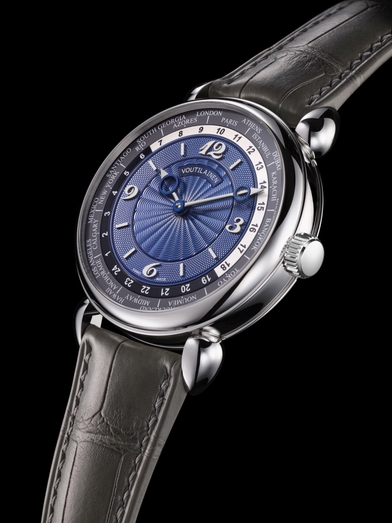 ワールドタイム機構は、世界の主要都市の時刻を同時に簡単に読み取ることができます。操作は驚くほど直感的で、リュウズを内側に押し込むだけで、時針、昼夜表示付き24時間ディスク、都市ディスクが同期して進みます。12時位置の都市は、分表示に影響を与えることなく、現地時間の基準となります。ディスク上の他の都市は、それぞれのタイムゾーンの正確な時刻を表示します。
